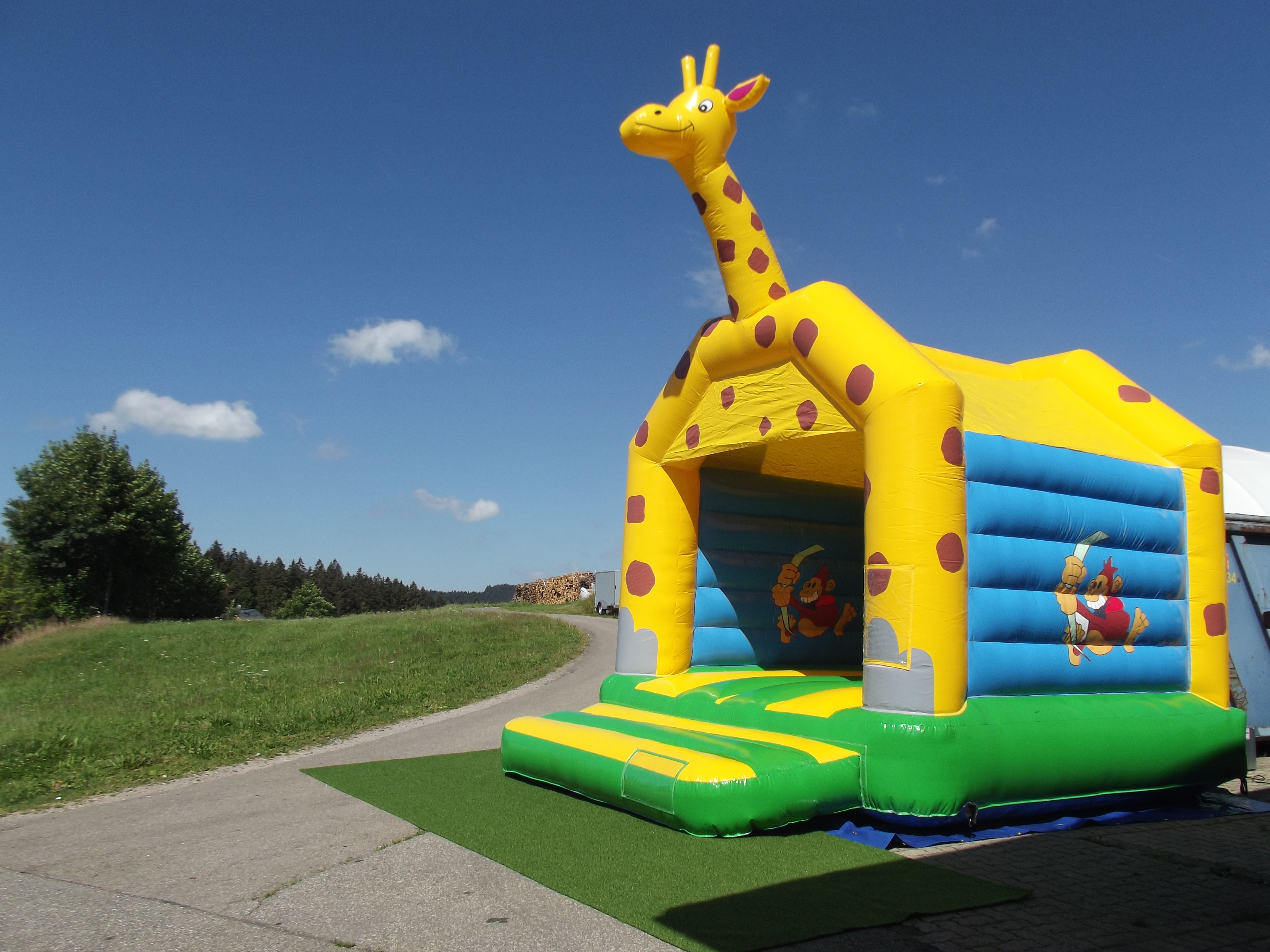 Hüpfburg Giraffe: Innengröße 5,20 x 4,0 x 4,50m. Gebläse 1,1KW max. 10 Personen bis 12 Jahre.