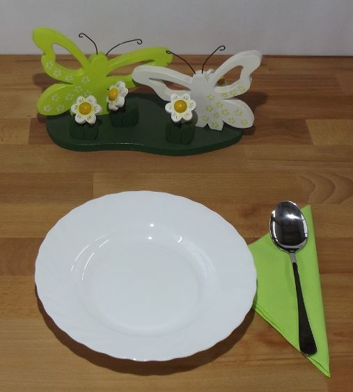Tafel-Geschirr besteht aus: Suppenteller und Löffel Teller Ø 22,5cm, uni weiß Kann auch als Salatteller verwendet werden.