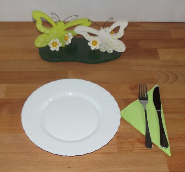 Tafel-Geschirr besteht aus: Teller, Messer und Gabel Teller Ø 24,5cm, uni weiß.